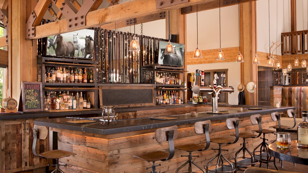 Haydens Post is a ruggedly handsome restaurant & bar with a spacious indoor and outdoor area featuring a grand stone fireplace, comfortable seating, and panoramic views of Snow King Mountain. The restaurant and bar ambiance exude a rustic, urban vibe complemented by a menu of traditional, regional favorites, classic signature cocktails and locally crafted beers.